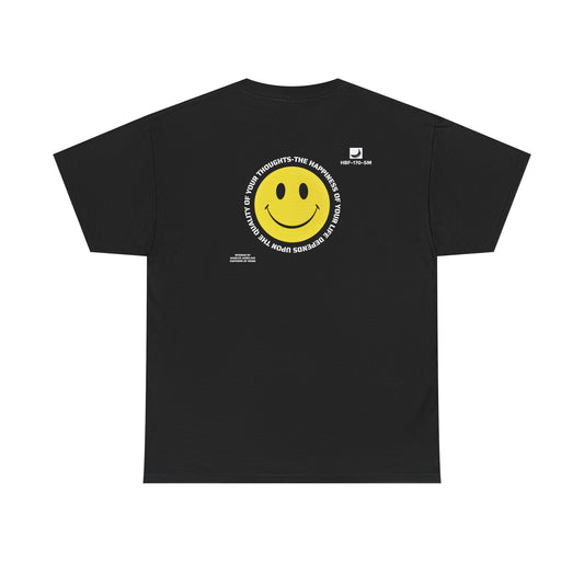 Classic Yellow Smiley Face T-Shirt featuring Wisdom of the Ancients, Inner Peace, and Banana Print Graphics